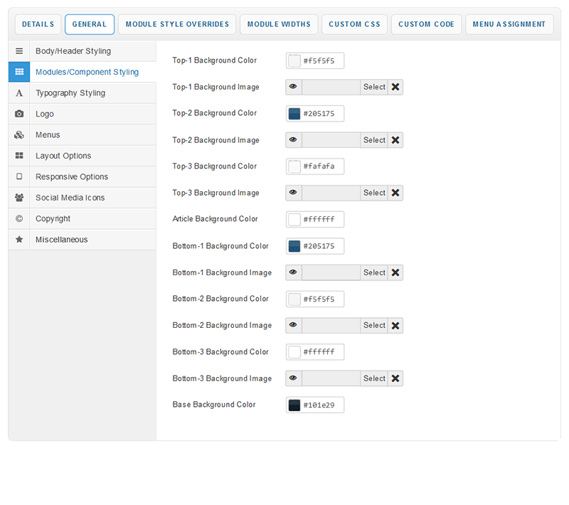 Your template parameters can be access directly from your Template Manager giving you access to a host of features including a selection of template styles, some colour choosers to help customise your template headers and links, a number of layout options and easy to use logo settings.